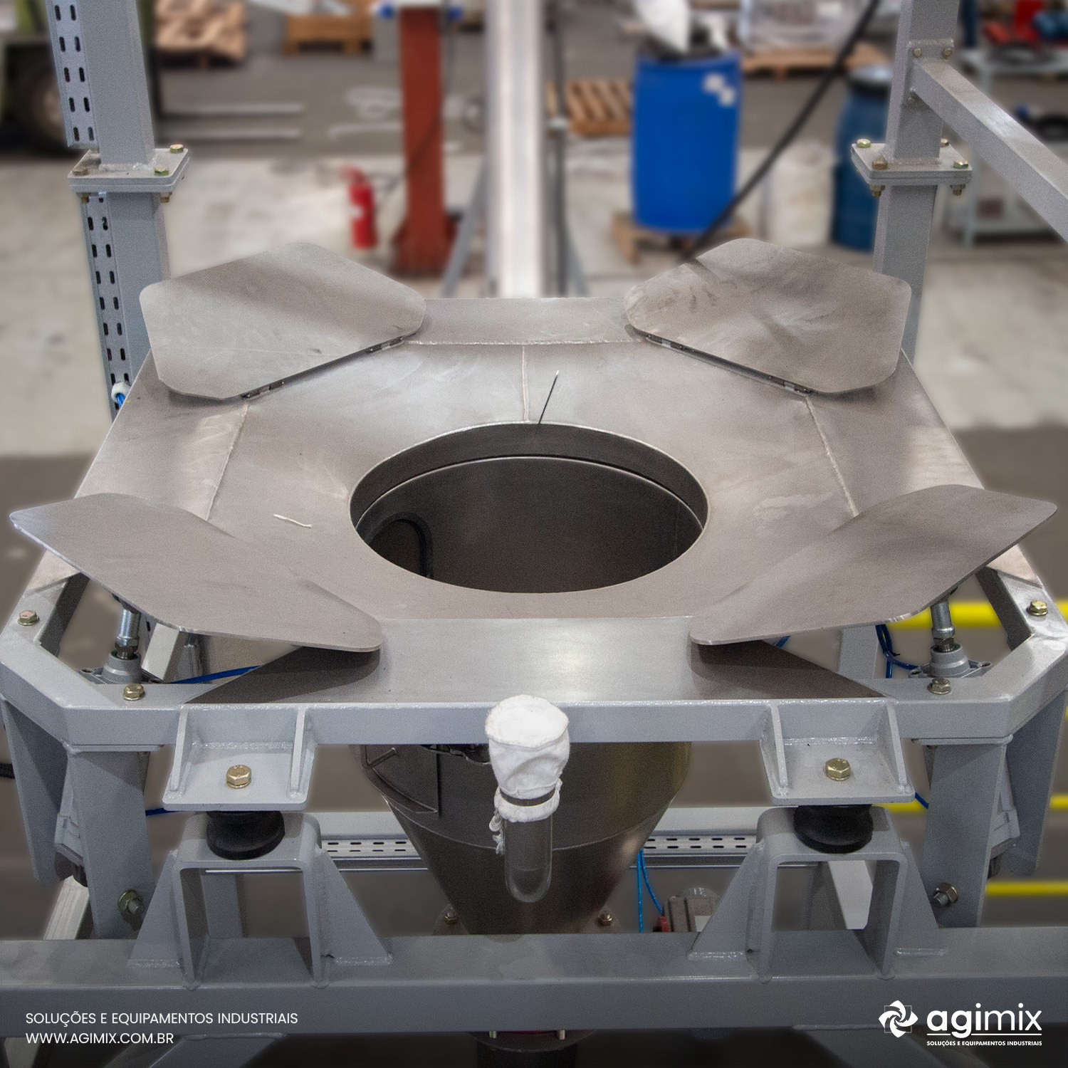 Handling Big Bags (FIBC - Flexible Intermediate Bulk Container) in industrial processes requires control, safety, and standardization. When unloading is carried out in an improvised manner, it leads to waste, contamination risks, excessive workforce strain, and variations in product flow, directly impacting productivity and operational costs. In addition, bulk materials such as powders, granules, and chemical inputs require precise flow control; without a proper system, the chances of raw material loss, rework, and failures in production supply increase.
