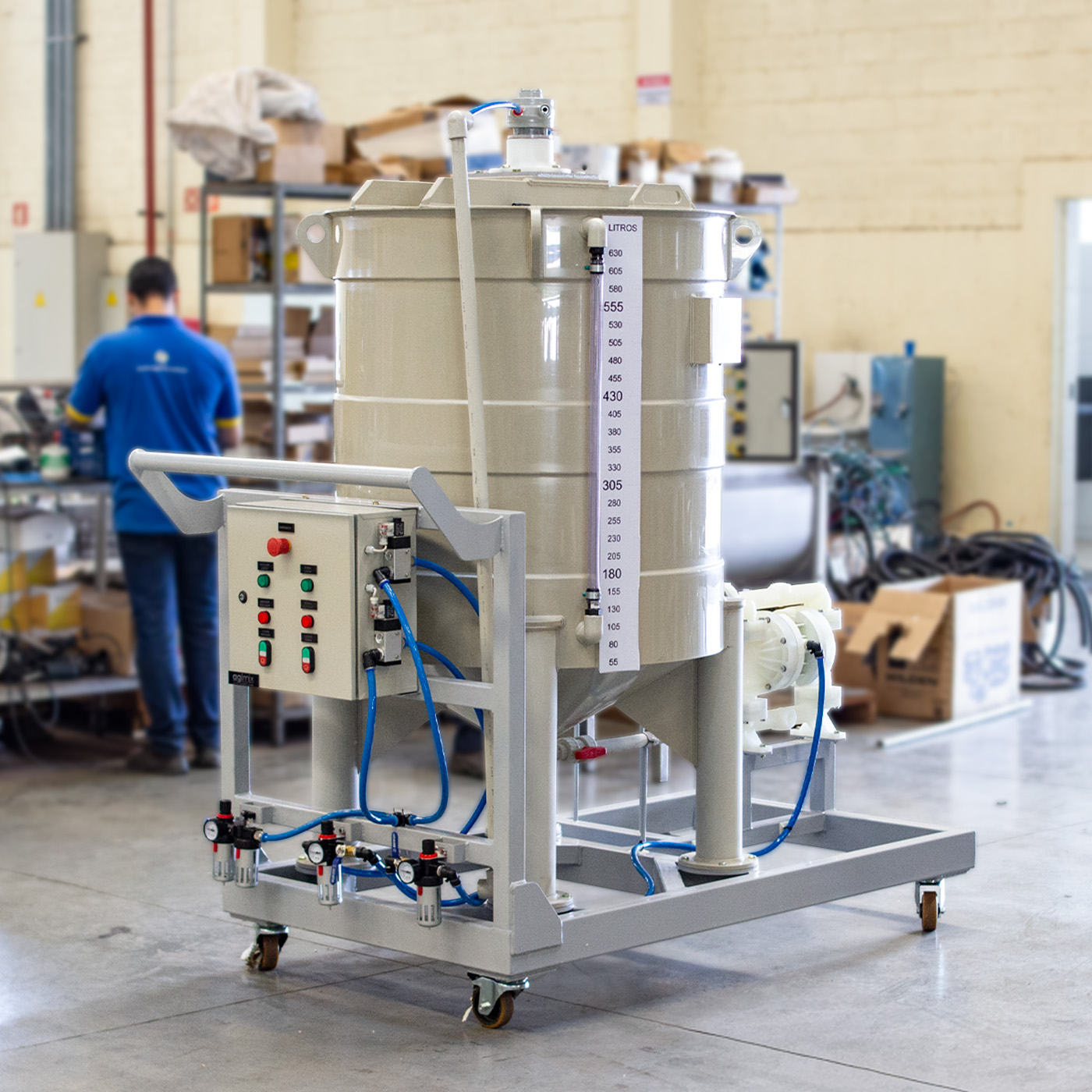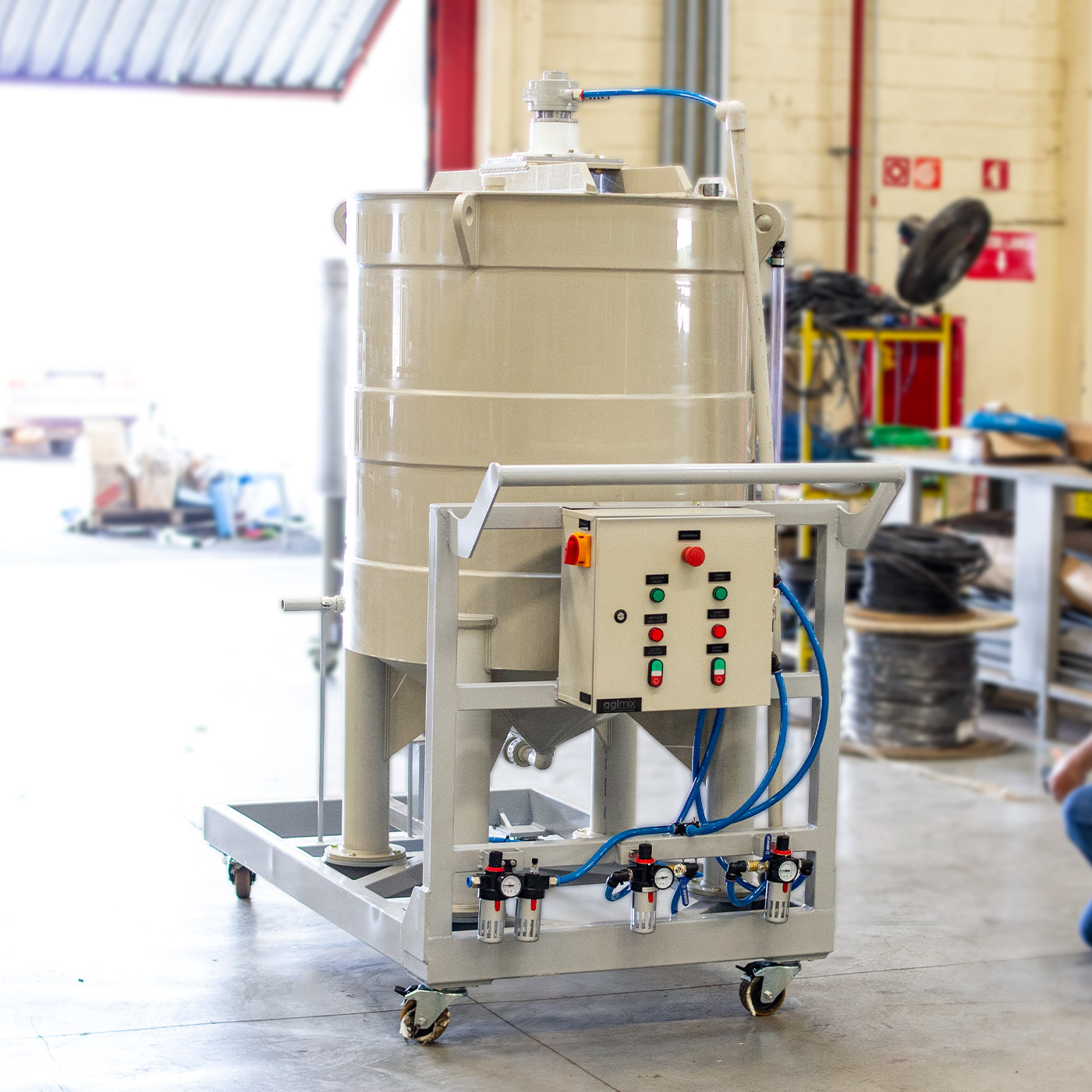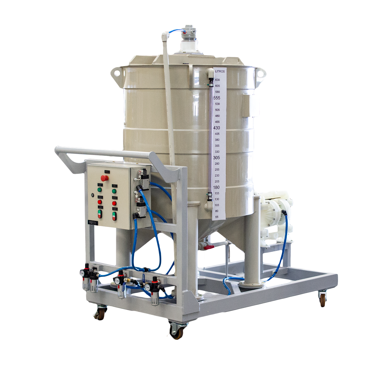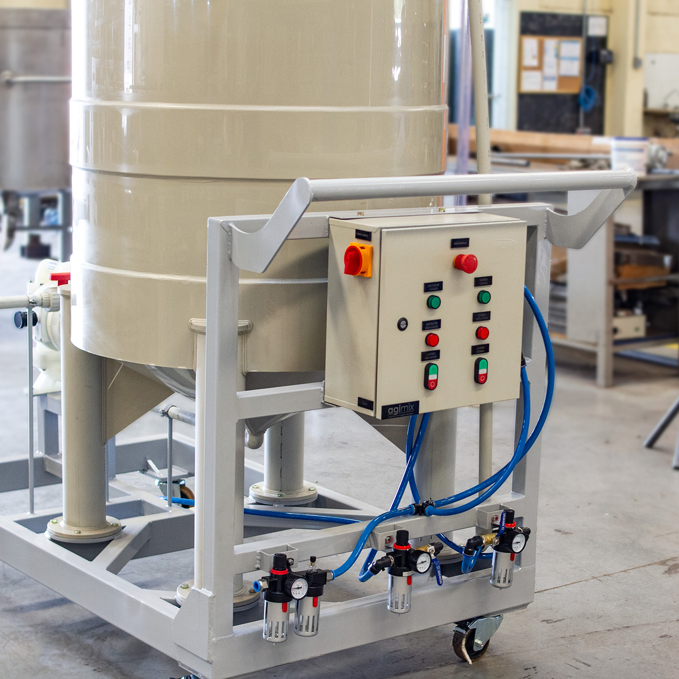 The Polymer Preparation Agitation Tanks from Agimix are designed and manufactured following national and international standards. During production, they undergo a rigorous quality process, including hydrostatic pressure tests, liquid penetrant tests, and others when necessary. These tanks are used together with properly designed agitators to meet process requirements with maximum efficiency.