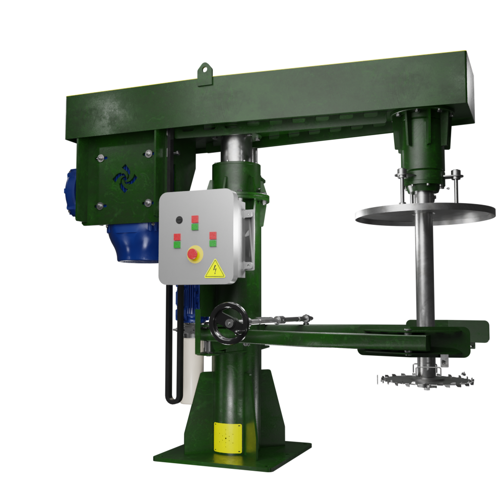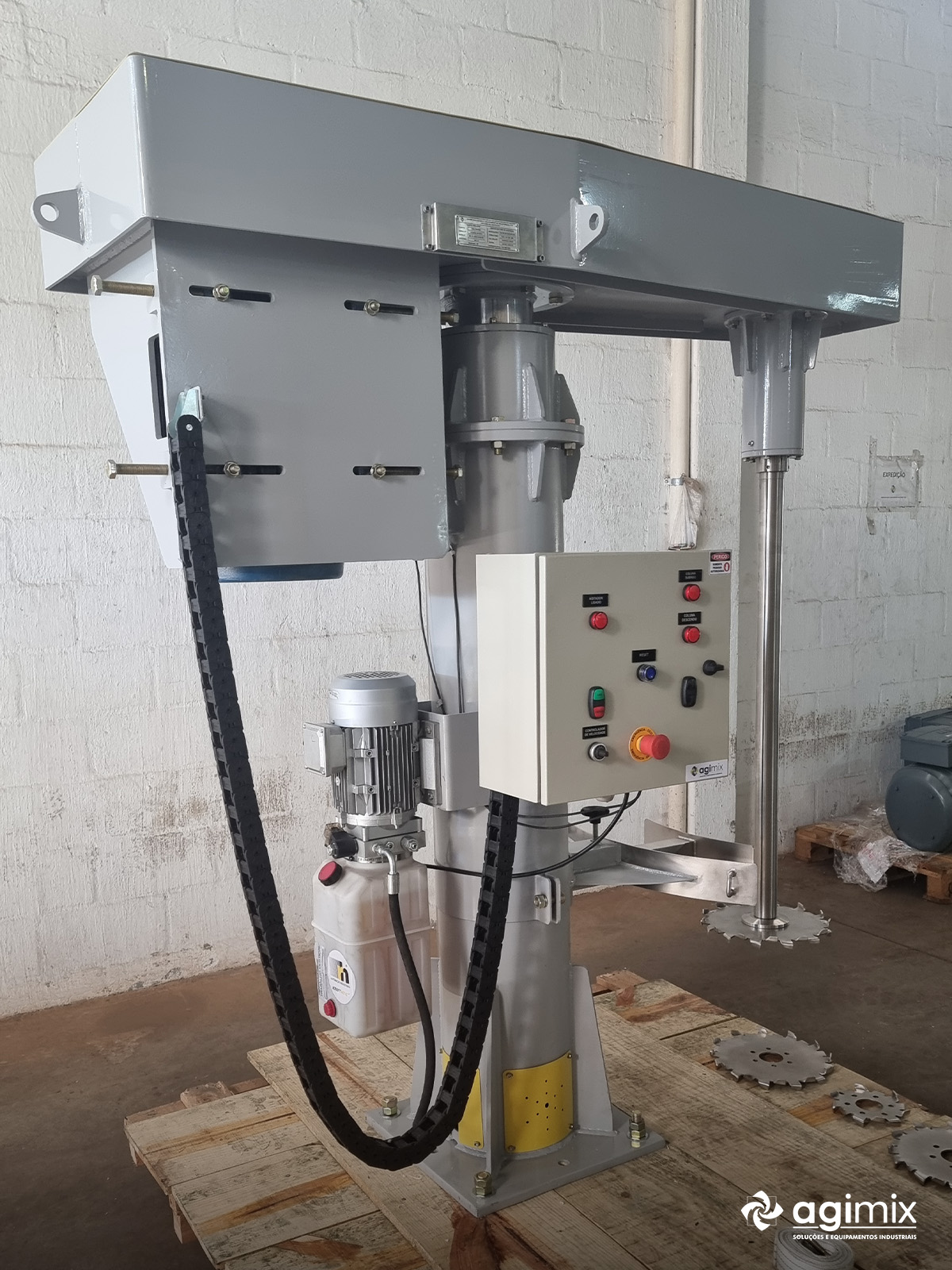 A hydraulic lift disperser is a fluid agitation/dispersing equipment (liquids, suspensions, emulsions) that features a hydraulic system allowing the dispersion assembly (shaft, disc/impeller, motor) to be raised and lowered in a controlled manner. This facilitates:
